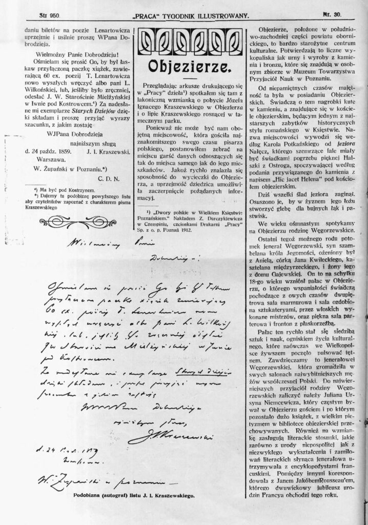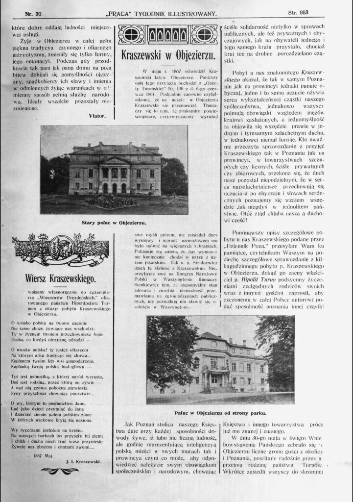 Wydanie jubileuszowe, poświęcone Józefowi Ignacemu Kraszewskiemu w setną rocznicę urodzin. W artykule odnotowane są wątki jego pobytu w Objezierzu.