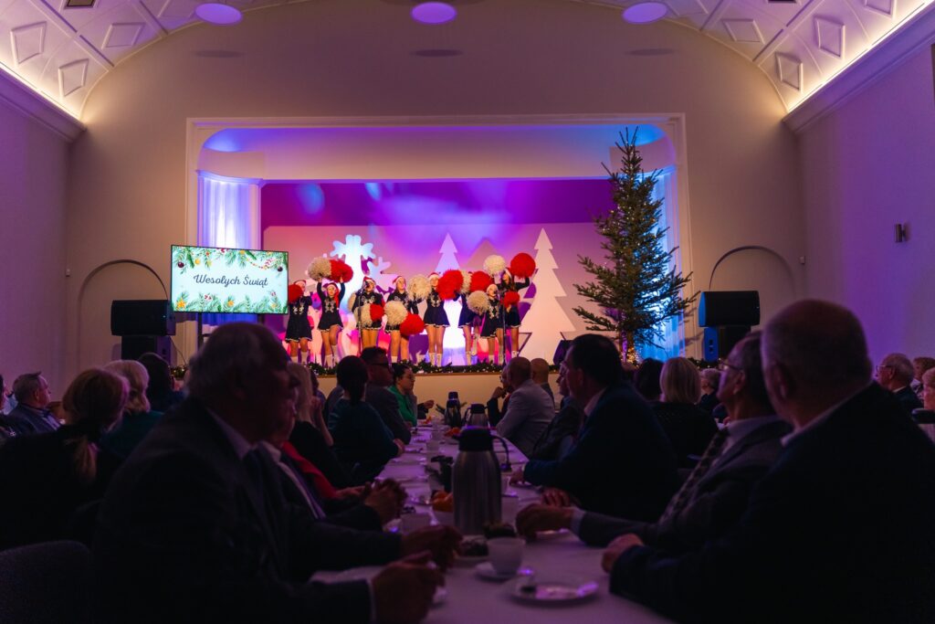 Część artystyczna wprowadziła uczestników w prawdziwie świąteczny klimat. Na scenie wystąpiły: Tamburmajorki w świątecznym występie przygotowanym przez Emilię Nowaczyk oraz niezwykle uzdolnione Maja Cichacka oraz Natalia i Małgosia Cygan.