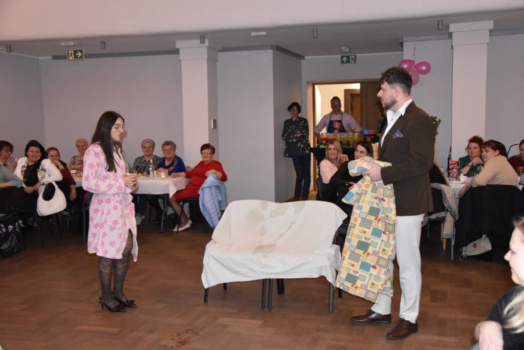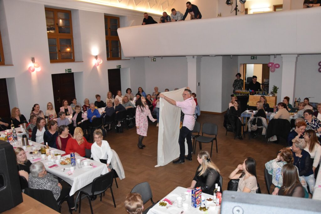 Dnia 14.03.2026 r. w Domu Kultury w Objezierzu zebrało się ponad 70 Pań z Objezierza, Ślepuchowa i okolicznych wsi, by uczcić swój piękny dzień. Punktualnie o godzinie 18.00 imprezę rozpoczęli gospodarze wsi, czyli Sołtysi Objezierza i Ślepuchowa, Pani Renata Morka oraz Pan Piotr Desperak. Z zaproszenia Sołtysów skorzystała także Pani Starosta Zofia Kotecka oraz Radny Jakub Przybysz. Pani Starosta wspomniała o dawnych uroczystych obchodach Dnia Kobiet, kiedy to Panie otrzymywały goździki i rajstopy! Ha, rajstopy dziś kupimy w każdym sklepie, kiedyś to było dobro jakby luksusowe. Czasy się zmieniły, i całe szczęście! Wieczór rozpoczął występ Grupy Teatralnej DEJA VU, pod przewodnictwem Pani Anny Kłos, ze swoim autorskim programem „Historia wszystkich Kobiet”. Było muzycznie, teatralnie, poezyjnie, tanecznie. I kto by pomyślał, że Sołtys Ślepuchowa potrafi tak pięknie prześcieradło przeciągać? Skecze były rewelacyjne, na sali było gwarno od śmiechu. I o to w tym wydarzeniu przecież chodziło. O śmiech, o dobrą zabawę, radość, o zapomnienie o codziennych obowiązkach, smutkach. Ten dzień miał być chwilą wytchnienia, zapomnienia, relaksu i pełnego luzu. I był! Po występie grupy teatralnej wszystkie Panie oddały się dobrej zabawie. O oprawę muzyczną zadbał DJ Adam Szymkowiak, o dobry nastrój Krzysztof Stawicki, o to by stoły nie były puste zadbały zaradne gospodynie dostarczając domowe wypieki i przekąski, a Prezes sklepu GS zafundował owoce. I żeby nie było, nadmienić trzeba znaczącą rolę Panów w ów wydarzeniu! W pięknych fartuszkach dbali o Kobiety w tym wyjątkowym dniu tak, jak Kobiety dbają przecież o nich przez pozostałe 364 dni! Nie ukrywajmy! Dla wielu Pań to niecodzienna sytuacja (dla mnie też, przecież to „święto lasu” kiedy mąż coś przygotuje, czy wyręczy z domowej pracy) i zapewne każda by chciała, aby się częściej powtarzała. Także, Drodzy Panowie, do dzieła! Wieczór upłynął na wspólnej zabawie na parkiecie, przy świetnej muzyce i w dobrych humorach. Podczas imprezy czuć było jedność Pań, wspólnotę, była bezpieczna przestrzeń do rozmów, bo czasem zwykła rozmowa daje ogromne poczucie komfortu i zrozumienia. Zdecydowanie Panie zrelaksowały się, poprawiały swoje samopoczucie, zredukowały stres, bo każdy to wie, że „śmiech to zdrowie”. Na koniec każda z Pań otrzymała symboliczną różę i upominek. Wysoka frekwencja i dobra zabawa zdecydowanie dają Sołtysom, Radzie Sołeckiej i osobom zaangażowanym w organizację wydarzenia poczucie, że robią kawał dobrej roboty. Nie bez znaczenia jest integracja – słowo, które znaczy więcej niż tysiąc słów.