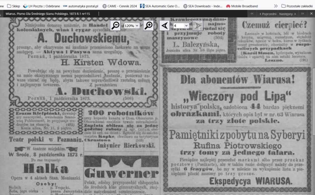 W dodatku do 101 numeru Kaliszanina: gazety miasta Kalisza i jego okolic, natknąłem się na ogłoszenie, w którym „Rządzca gospodarczy” poszukuje pracy od 1 lipca 1884 roku. W swoim krótkim CV-ogłoszeniu powołuje się na rekomendacje m. in. u Hipolita Turny
