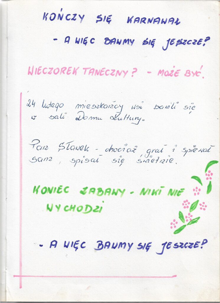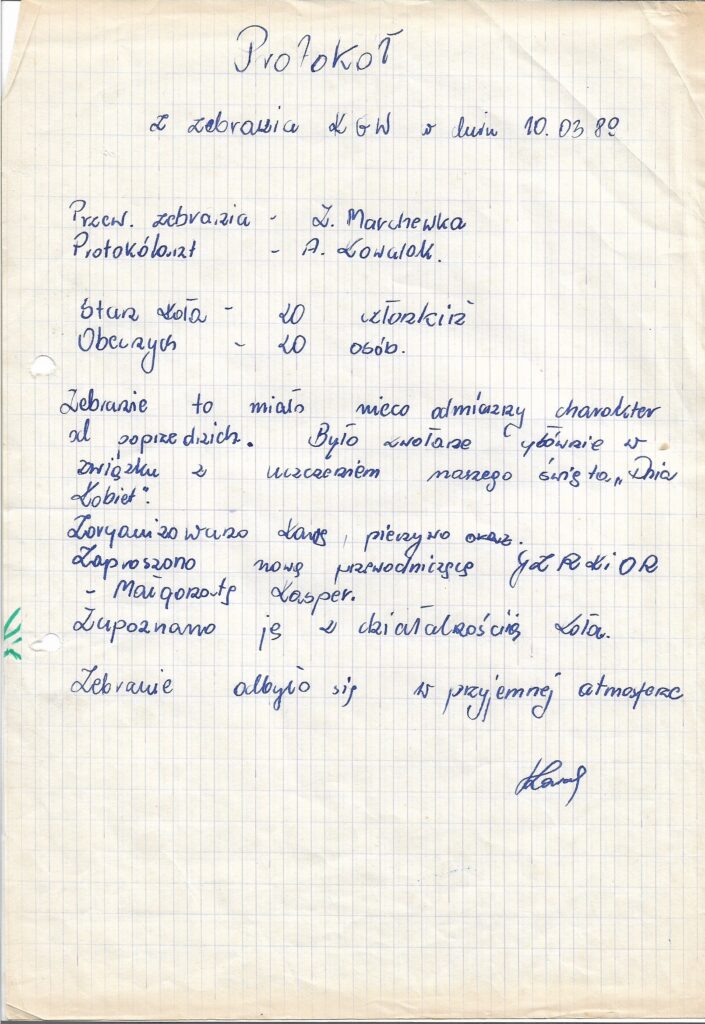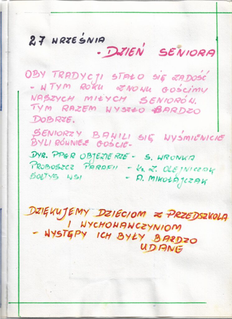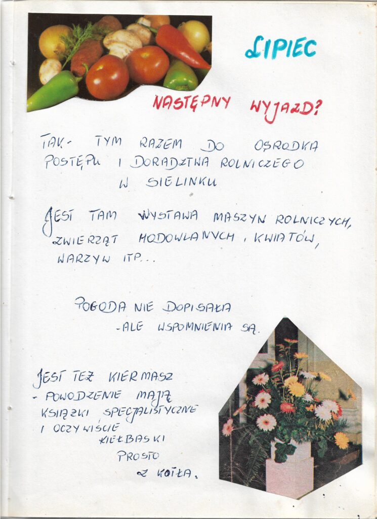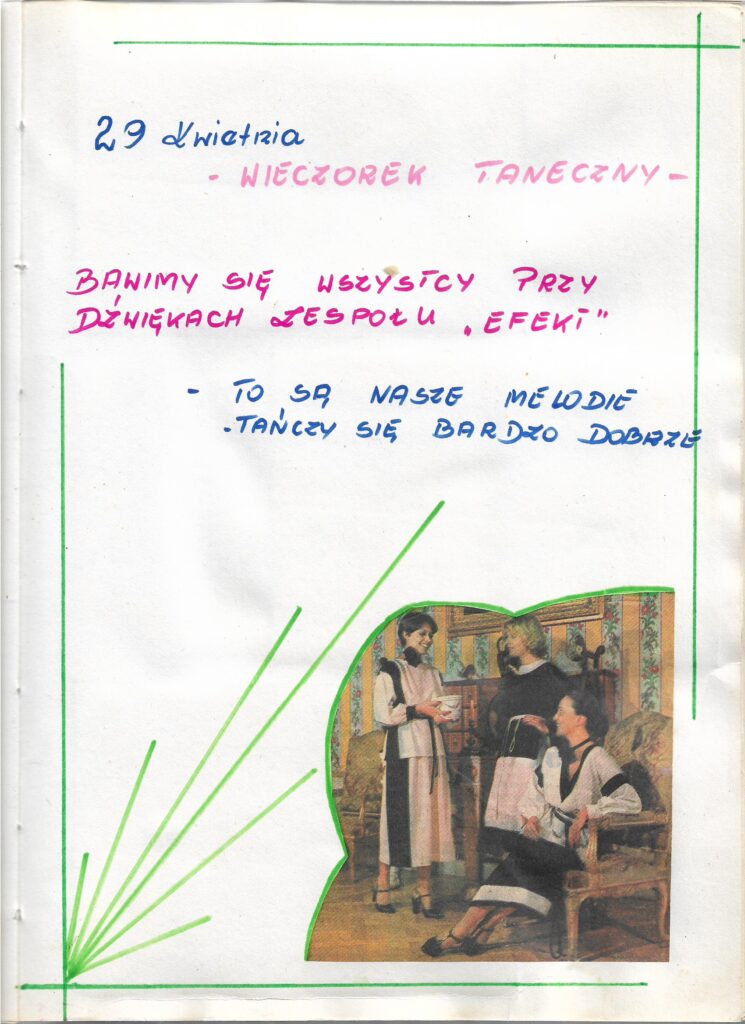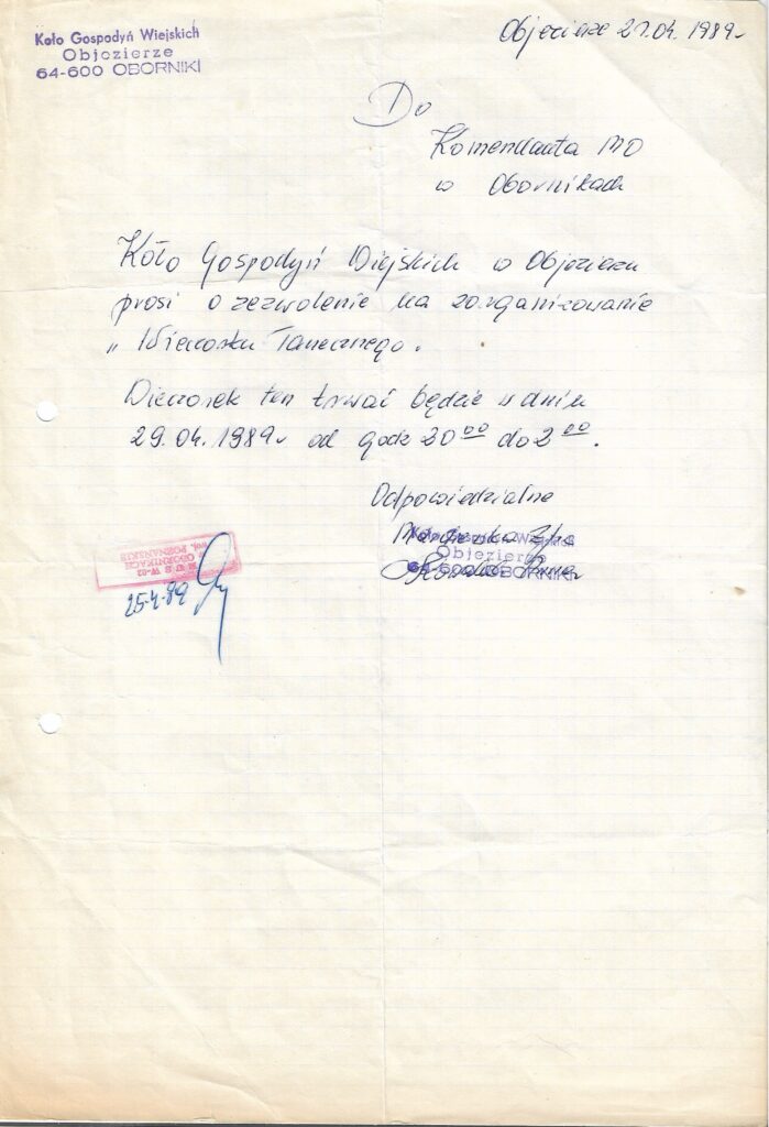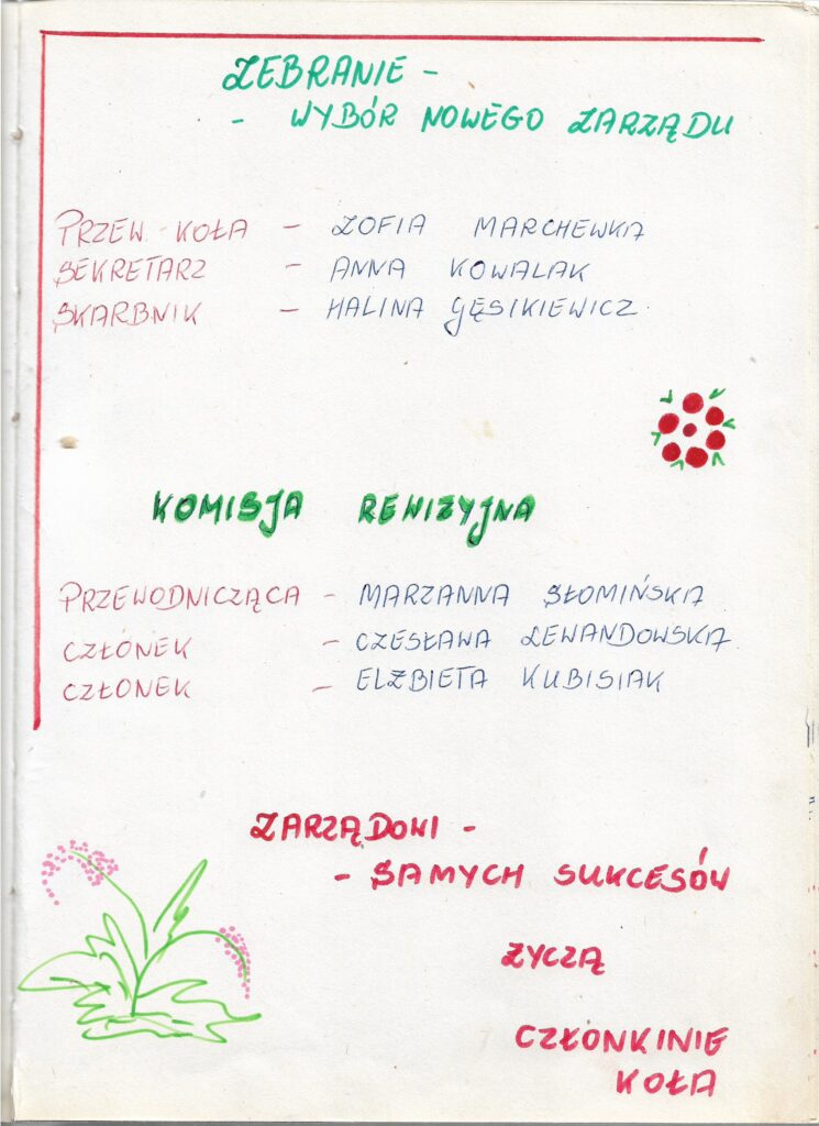 Kronika Koła Gospodyń Wiejskich w Objezierzu z lat 1987-1989. Prowadzona przez moją mamę, pisana odręcznie i opatrzona kilkoma zdjęciami z imprez KGW. W załączeniu rownież dokumenty: prośba o zezwolenie na zorganizowanie „Wieczoru Tanecznego” do komendanta MO w Obornikach, umowa z zespołem EFEKT oraz protokoły z zabrań KGW.