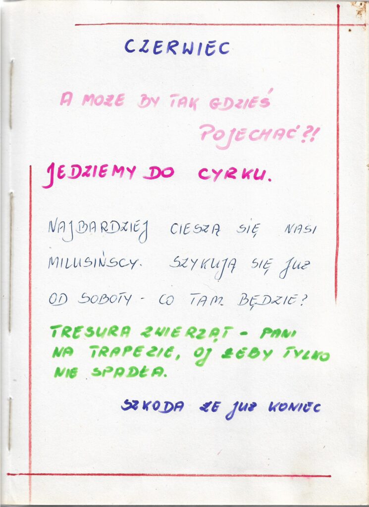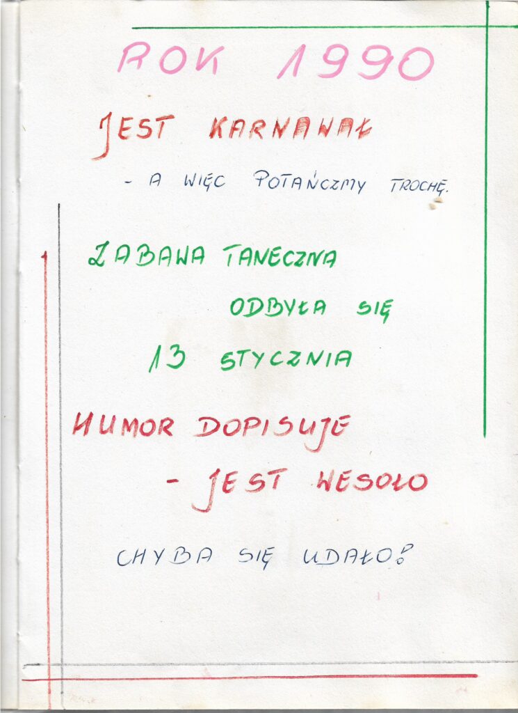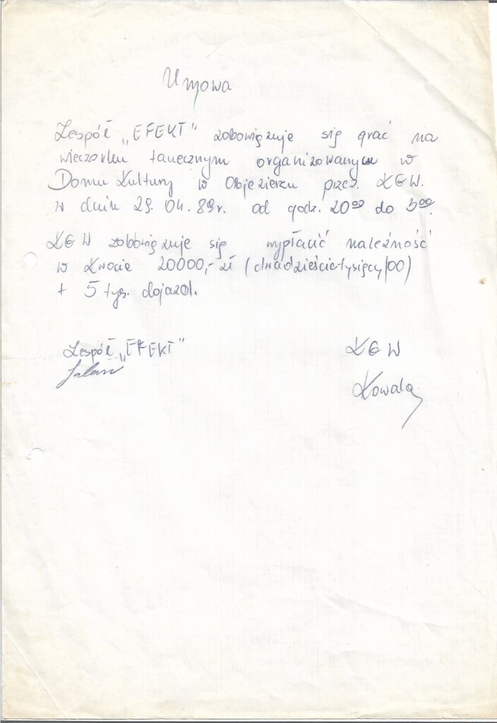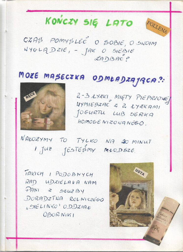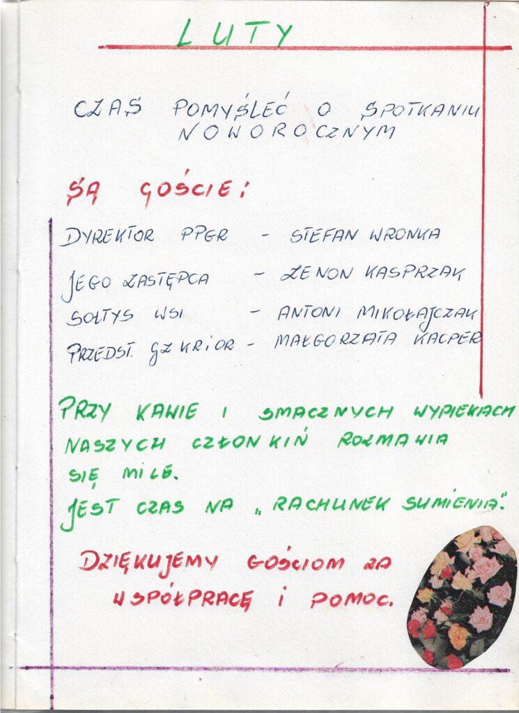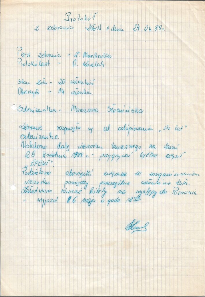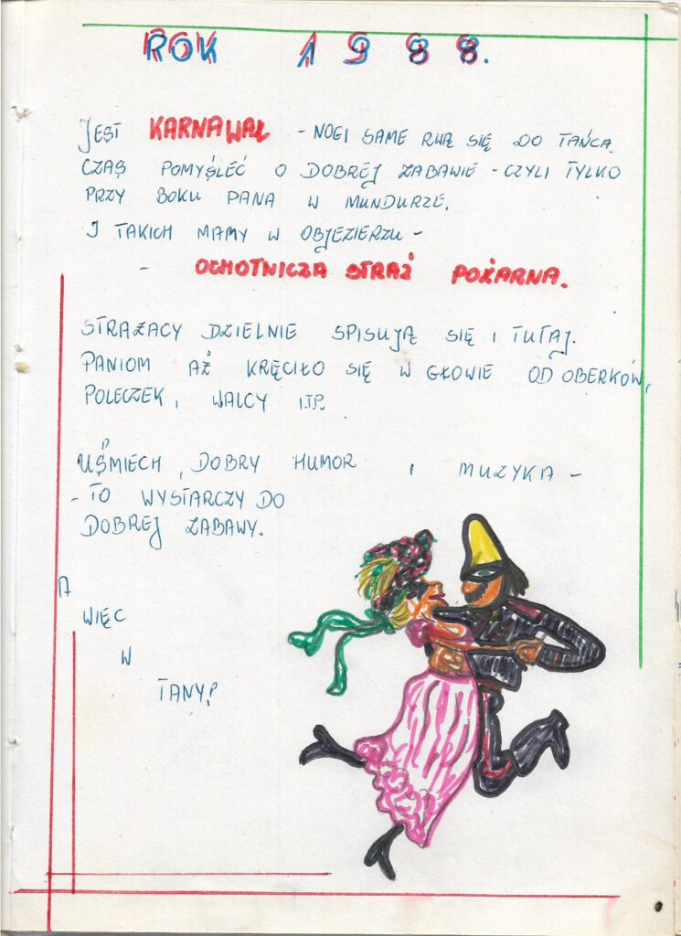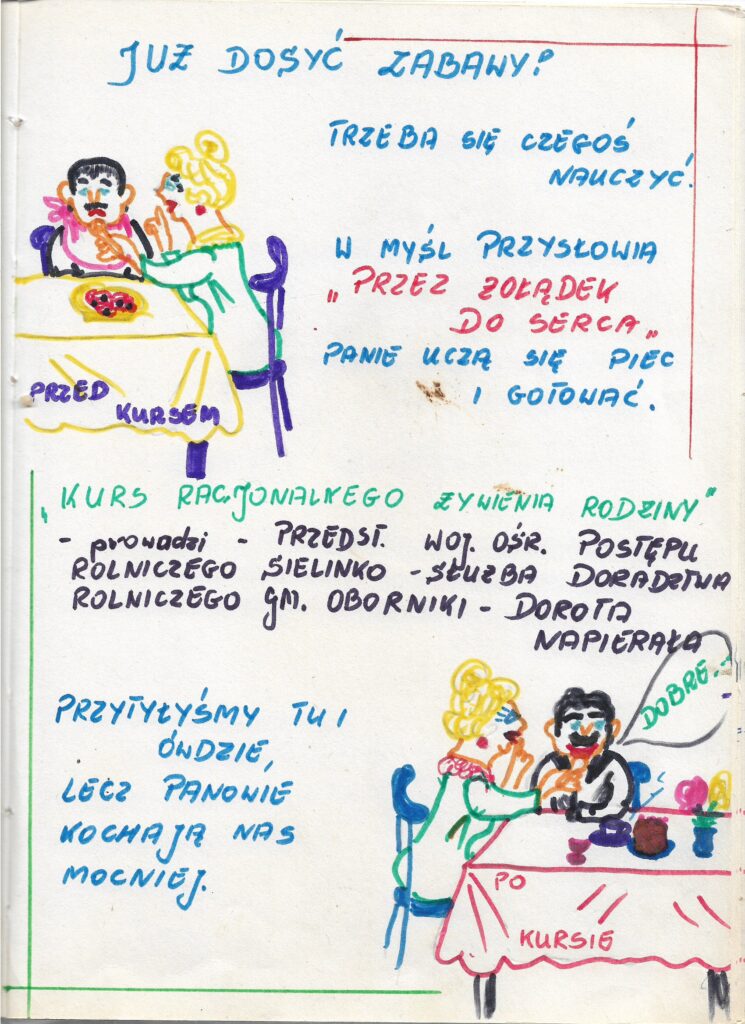 Kronika Koła Gospodyń Wiejskich w Objezierzu z lat 1987-1989. Prowadzona przez moją mamę, pisana odręcznie i opatrzona kilkoma zdjęciami z imprez KGW. W załączeniu rownież dokumenty: prośba o zezwolenie na zorganizowanie „Wieczoru Tanecznego” do komendanta MO w Obornikach, umowa z zespołem EFEKT oraz protokoły z zabrań KGW.